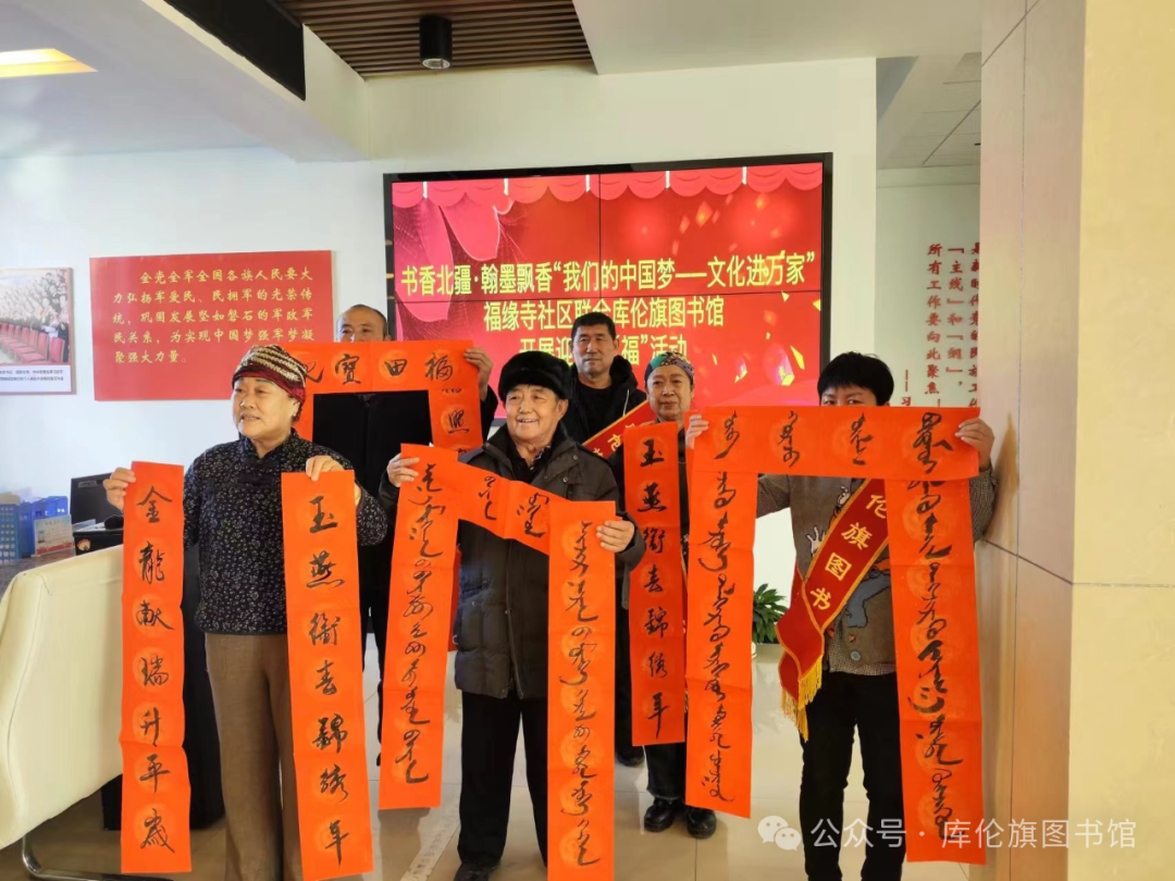 库伦旗图书馆共为群众赠送春联、福字50余副,为他们送去了浓浓的年味儿和祝福。